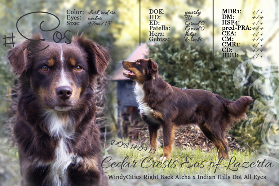 | Indian Hills Dot All Eyes DOB: 06.11.09 Breed: Standard Australian Shepherd Reg-Nr.: DN26464002 Colour: black tri