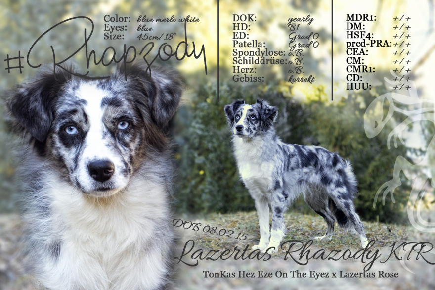 TonKas Hez Eze On The Eyez DOB: 30.08.12 Breed: Miniature Australian Shepherd Reg-Nr.: H-5568 Colour: black white