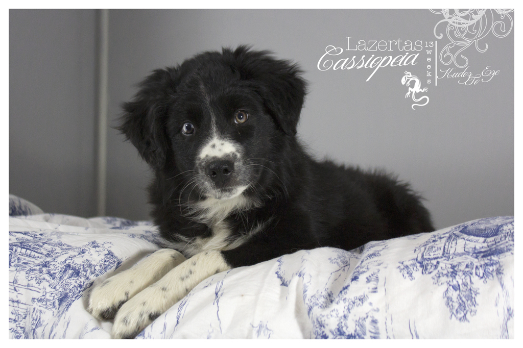 Nova war eines der Babies, was ich länger behalten durfte bis Frauchen sie abholen kam. Dadurch hatten wir mehr Qualitytime uns kennenzulernen und eine Beziehung aufzubauen, die wir bis heute nicht verloren haben. Nova war als Welpe einfach an eine Box zu gewöhnen und war stets tapfer und freundlich und nie sehr sensibel o.ä.. Ihre Zeichnung ist mindestens so außergewöhnlich wie ihre sehr verschiedenfarbigen Augen und Ramona und ich fürchten den Tag der Geburt ihrer einzigen Babies schon jetzt, denn wir werden wohl alle behalten müssen *lach*