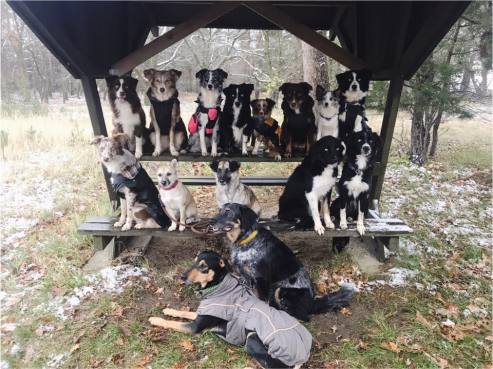 Die Antwort ist vielschichtig und mir fehlt die Zeit alle Punkte zu erfassen, aber wenn wir im gesamten "ausrücken", dann meistens zu Menschen, die (mindestens) so "beshepherd" sind wie wir - dort können wir dann auch mit allen Hunden übernachten.