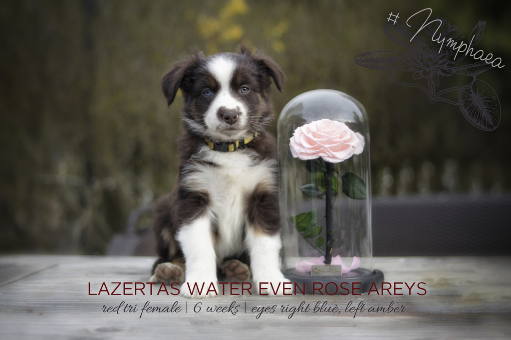 Lily heißt jetzt Nymphaea (bot. Seerose) und wurde mit 6 Wochen final als potenzielle&zukünftige Assistenzhündin ausgesucht. Sie geht zu ihrem Onkel Tycoon ( einem Bruder von Rhapzody (Eze x Rose)), der auch bereits in der Ausbildung steckt. Sie ist ein sehr einfühlsamer Welpe, meistens sehr entspannt. Ihren Unmut kann sie aber auch bekunden. Wenn sie im ersten Moemnt manchmal vorsichtig ist, ist sie im nächsten aber schon sehr sicher. Sie hat sich super entspannt untersuchen lassen und Menschen mag sie furchtbar gern.