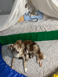 Abschließend: Kuma war Floras ganz großer Liebling. Wie oft er ganz ruhig und entspannt auf ihrem Schoß saß lag und schließlich einschlief, kann ich gar nicht mehr zählen. Er hat Nuancen von Bonnie und Ella. Hier wird man auch eher an Ruhe und Entspannung arbeiten müssen. Kumas ganz große Liebe sind Menschen und Kinder. Er ist was Geräusche angeht auch recht abgeklärt und hat überwiegende ganz vorne dran gelegen, wenn der Kärcher oder ähnliches Ungetüm durch die Wohnung oder den Garten sauste! Ich würde ihn trotzdem solange es geht tragen.