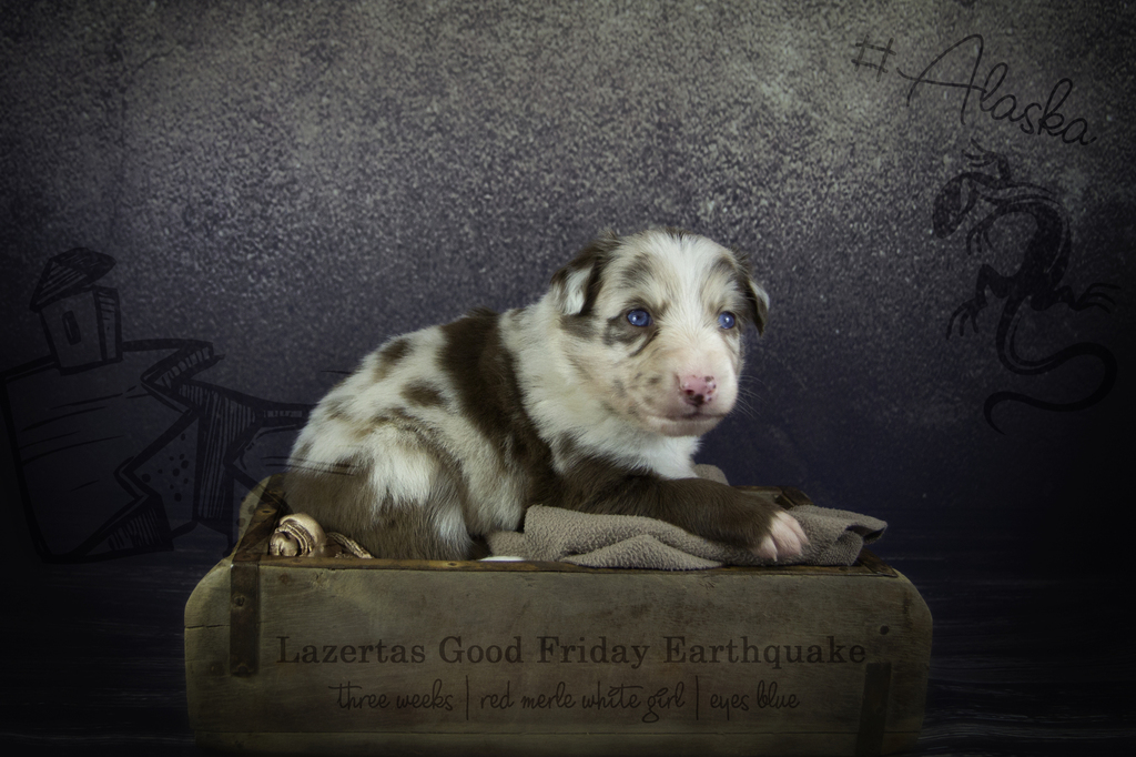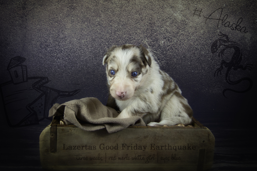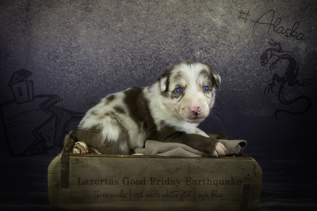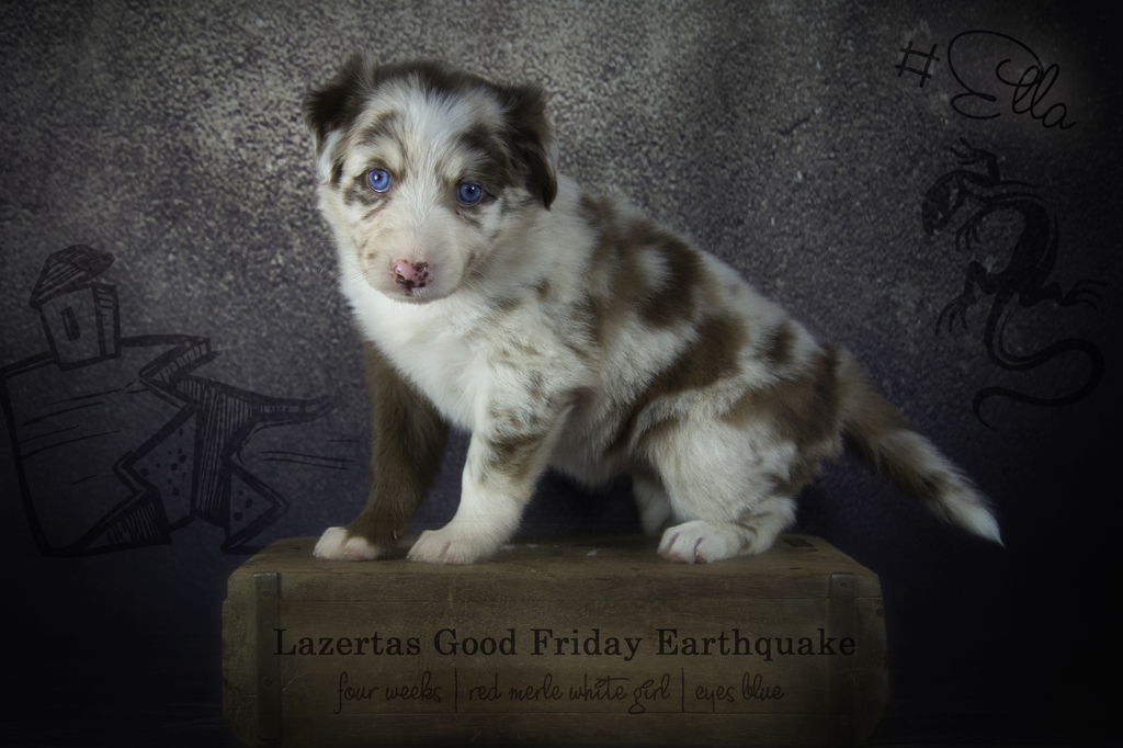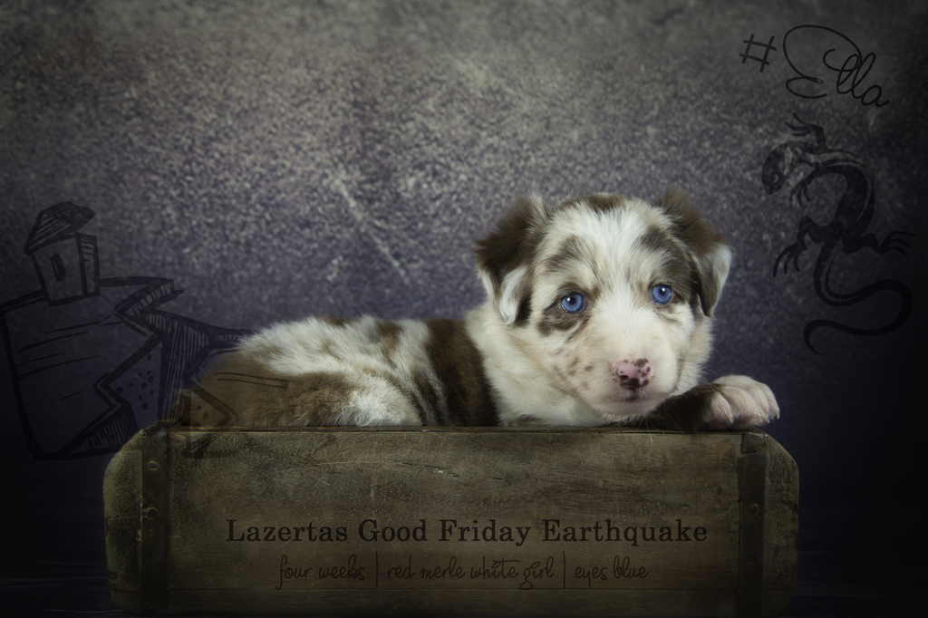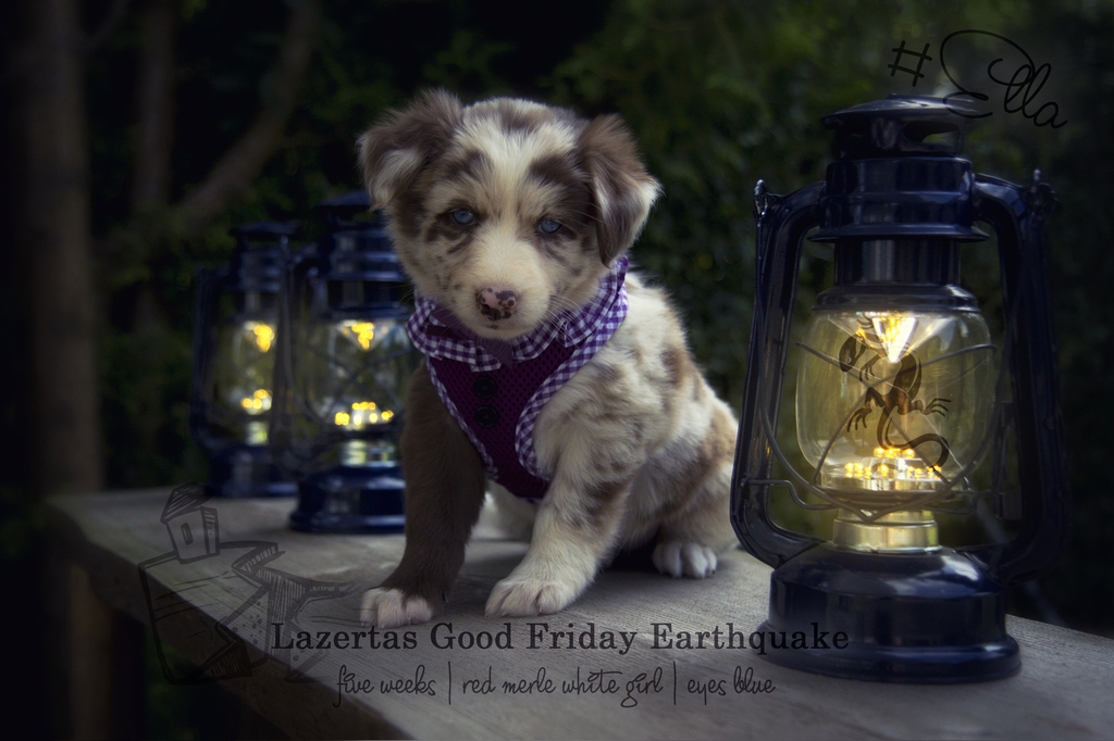 Als wir dann eh schon gebebt haben vor Begeisterung, hat Nomi noch ein superschickes und kräftiges Mädchen auf die Welt gebracht. Ja natürlich ist sie sehr sehr schön genau wie der Ort, dem sie ihren Namen verdankt. Sie hat ein braunes Vorderbein und wird kaum weiß zurückbehalten und ist bis jetzt schon sehr entspannt im daily handling. Alaska zeigt sich auch in der 2. Woche mittel im Temprament. Es war kein Problem ihre Nägelchen zu kürzen und ein paar Bilder zu gewinnen. Alaska bebte heute am 4. Tag der Zufütterung regelrecht. Sie musste UNBEDINGT essen, als Erstes und am meisten. Klar oder? Das wird sicher noch eine spannende Angelegenheit und ihr Schwänzchen ging wie verrückt. Sie ist wirklich super fröhlich, aber ohne Futti auch sehr entspannt. Ich bin sicher aus ihrer Motivation kann man sportlich sehr viel herausholen. Sie möchte sich gewiss in diese Richtung ausleben, wenn sie sich ebenso gelernt hat zurück zu nehmen. Sie ist wirklich ein wahres Erd-Bebi... So sehr sie auch baulich und charakterlich immer wieder zum Little Buddha mutiert, kommt man um ihre freudige Erregung nicht drum rum. Da wird gewedelt, wo geht und beim Fressen langt sie (weiterhin) kräftig zu. Sie hat schon ihren Namen bekommen und wird in der Lazertafamily groß und schwer. Ella hat ein wunderebare unerschrockenes Temprament. Sie kommentiert zwar immer noch gern ihre Umgebung, aber meistert alles relativ leicht. Sie nimmt auch schon mal Metall in den Mund, denn Essen kommt für sie immer in Frage :P