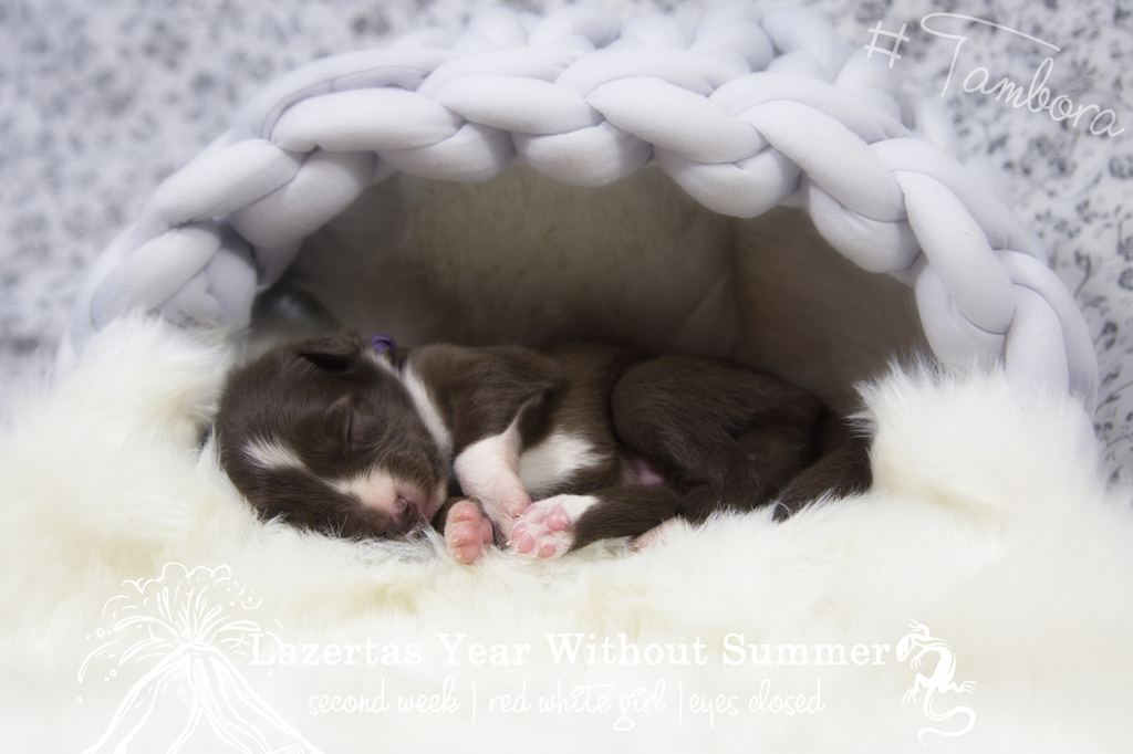 red & white female | 250g @birth, 700g @2w, 1kg @3,5w, 1,6 kg @5w, 2,1 @6w | eyes right brown; left blue - fest reserviert für Cordi