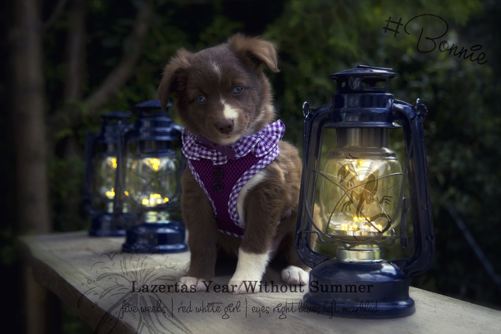 Auch in Woche 2 bin ich explosionsartig verliebt in ihre Art und sie ist so artig. Wenn das mal nicht schwer wird... und ich glaub sie mag mich. Schleck, schleck <3 Tambora ist wirklich ein liebes Hundekind. Auch mit 3 Wochen vergibt sie schleckende Liebesbekundungen, zeigt mittleres Temperament, frei und offen im Geist. Es gibt nichts zu meckern. Neue Situationen hält sie gut durch. Mit 5 Wochen ist Tambora immer noch ein wunderbarer Welpe in der glodenen Mitte. Beim auf den Arm nehmen, bricht sie gerne in Freude aus. Sie interagiert fein mit den Geschwistern und erobert bedächtig neue Umgebungen. Also Tambora hat sich zu einem crazy Girl gemausert mit einem fantastischen Ohrenspiel, was ihre zuckersüße Mimik und Gestik zeigt. Man sieht ihr ihre Befindlichkeiten an und es gilt sie wohlwollend und liebevoll in ihrem Erleben zu unterstützen. Sie muss auf jeden Fall entspannen und ruhen lernen, denn ihr Frohsinn reicht locker für 2 Welpen. Tambora heißt jetzt Bonnie und sie hatte schon die erste Klickereinheit für ihren neuen Namen - genau wie Ihre Geschwister.