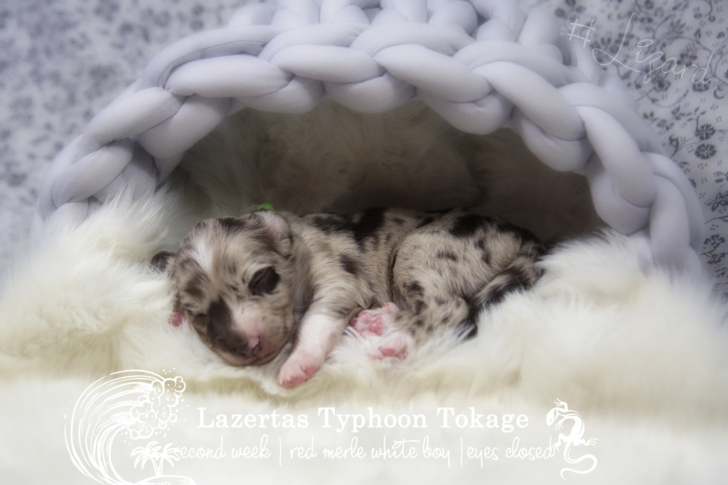 red merle white male | 260g @birth, 720g @2w, 1050g @3,5w; 1,7 kg @5w, 2,3kg @6w | eyes blue - fest reserviert für Emma, nein Ihre Eltern!