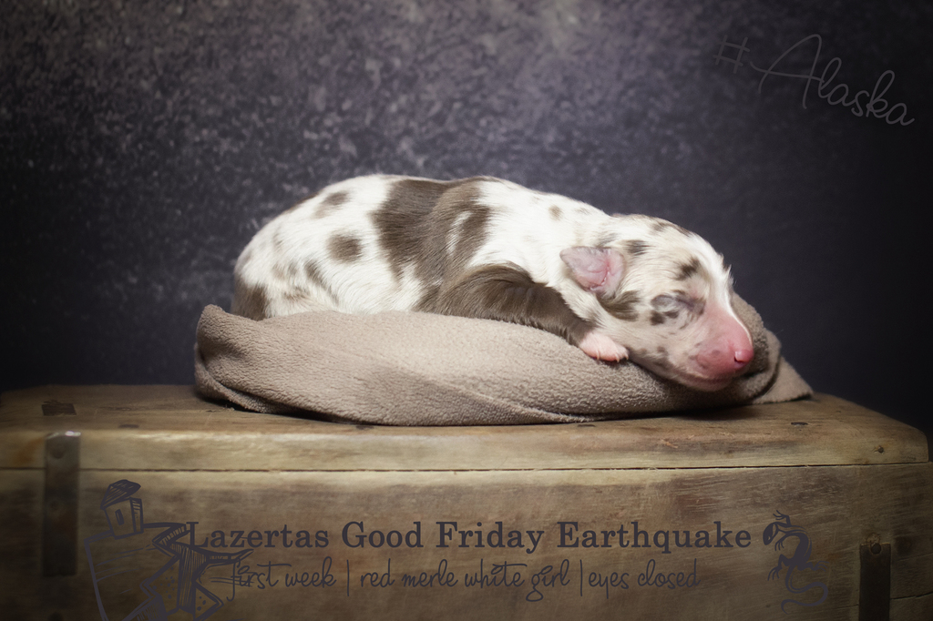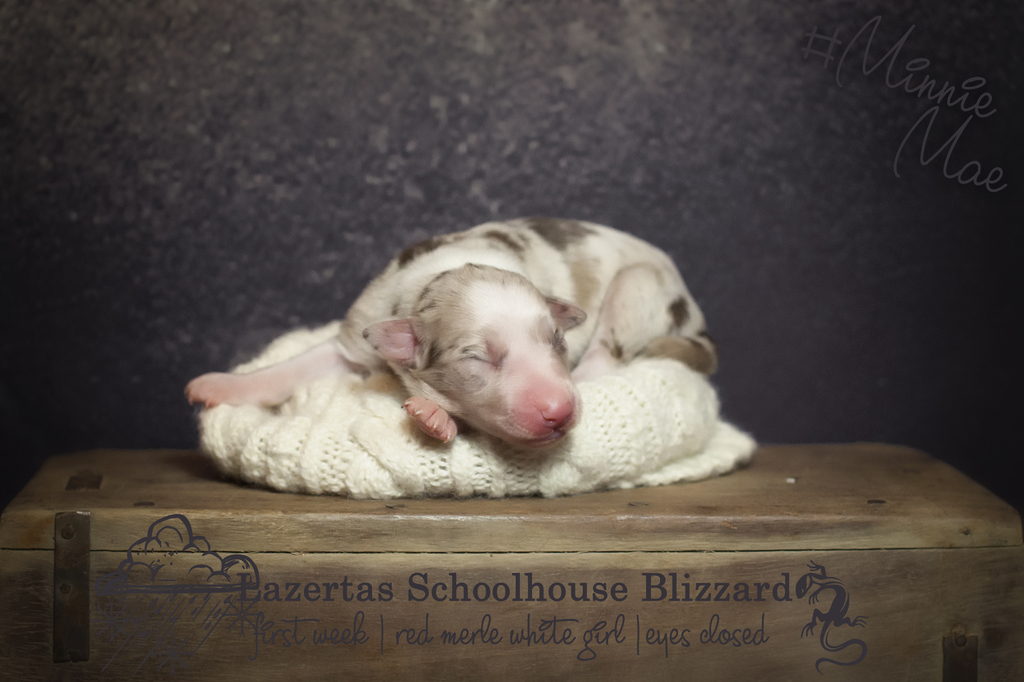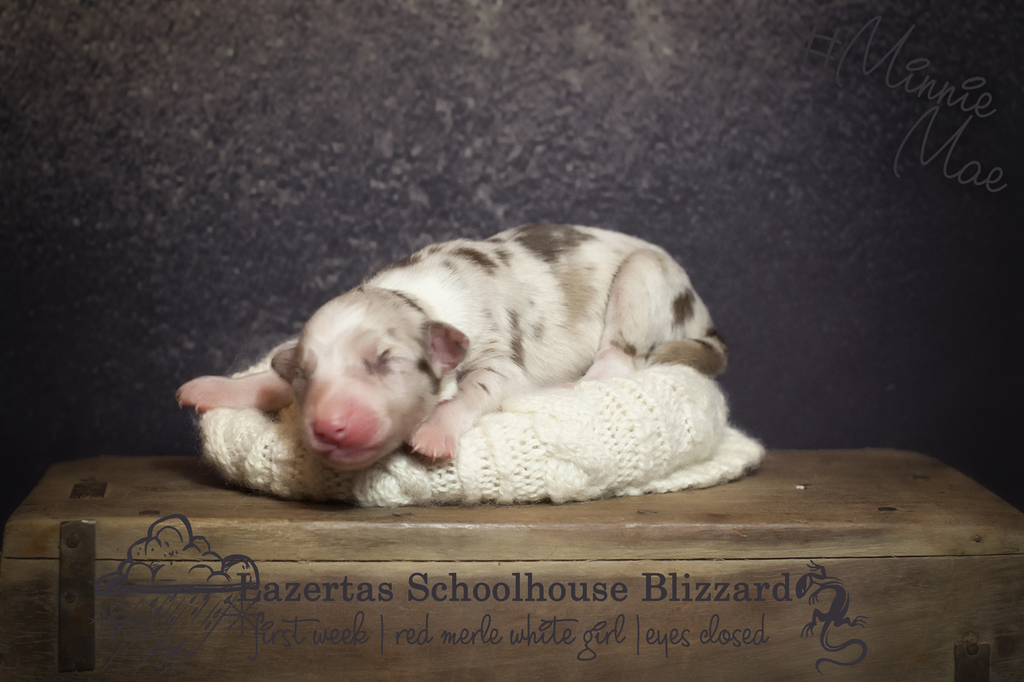 red merle white female | 250g @birth, 680g @2w, 1kg @3,5w, 1,6 kg @5 w, 2,2kg @6w | eyes blue - fest reserviert für Isabel