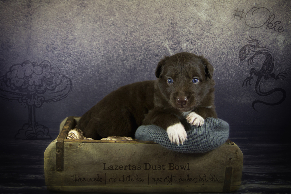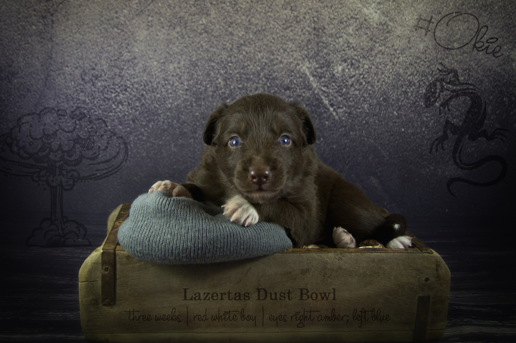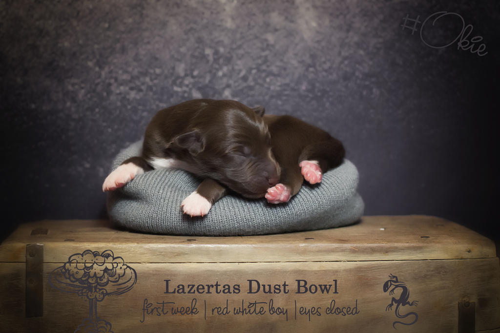 Und zu guter Letzt mein Traumjunge. Einmal komplett im Staub gelandet. Nur die Füßchen und die Schwanzspitze guckten noch oben heraus. Wobei es wohl eher einen Kohlenpott war, so dunkelbraun wie er ist. Nomi hat mit ihm eine komplikationslose Geburt beendet. Ich bin so stolz auf sie. Spannende Wochen liegen vor uns! Okie ist eine Wucht, so schnell bleibt auch in der 2. Lebenswoche kein Staub an ihm haften. Er poltert munter durch alles, das man ihm so anbietet. Mal sehen wie die Augen werden. In jedem Fall hell. Okie... und ich werden vieeeeeel Freude in den nächsten Wochen haben *lach* Okie ist ganz bestimmt außergewöhnlich und wird sicher der perfekte Partner in Crime. Er probiert alles einmal aus, beweist Ausdauer und Beharrlichkeit, aber mein Atem ist länger. Er ist genauso futterverliebt wie Alaska und wird somit vieles im Handumdrehen lernen - nicht immer das Richtige. Einstauben wird man mit ihm ganz sicher nicht, aber gut geführt wird man mit Okie im Team einiges Abstauben können! Okie ist super offen und jeder Besucher steht irgendwie auf ihn. Ja, das kommt nicht von irgendwo her. Er ist eben super interaktiv, ein großer Held und liebt Flora - ist also auch der Allererste beim GutenMorgenSagen. Er bleibt sich ganz und gar treu. Mischt auch schon die großen Hunde gut auf und weiß eben was er will, die Welt und alle Herzen im Sturm erobern ganz wie Schwesterchen Irie/Windi. Er muss ganz sicher unheimlich viel lernen :D